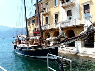 Im alten Hafen von Malcesine liegt öfter dieser alte Windjammer.