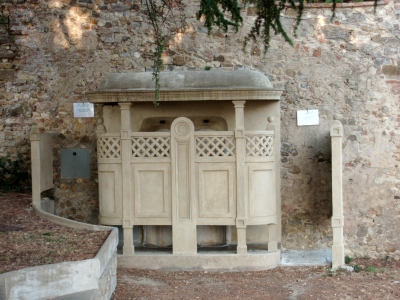 am Fonti di Docciola und kämpfen uns die lange Treppe hoch.